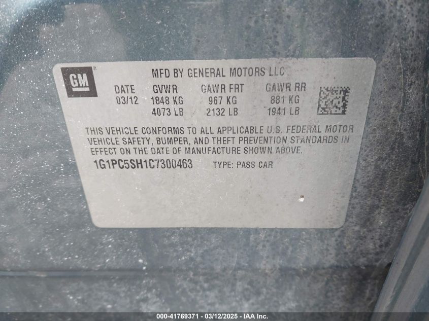 Color BlueCylinders 4Drive Front wheel driveVIN 1G1PC5SH1C7******State Run & Drive VerifiedDamage All over the carAuction date 2025-03-20 AutoRIA
