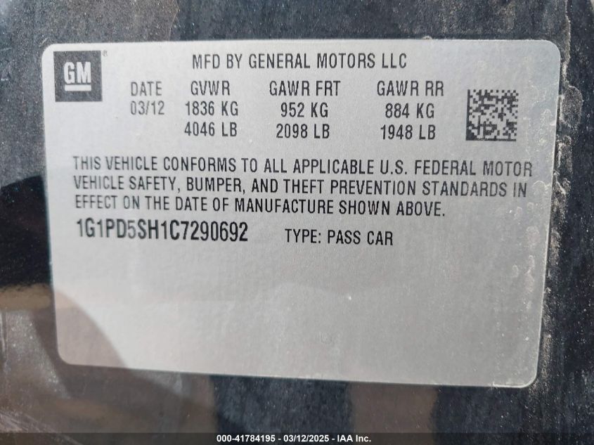 2012 CHEVROLET CRUZE 2012 Gasoline, 1.8, Front wheel drive, VIN - 1G1PD5SH1C7****** from the USA