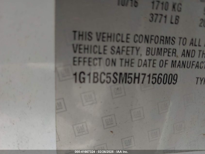 Color WhiteCylinders 4Drive Front wheel driveVIN 1G1BC5SM5H7******State Run & Drive VerifiedDamage Front right AutoRIA
