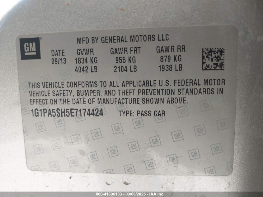 2014 CHEVROLET CRUZE 2014 Gasoline, 1.8, Front wheel drive, VIN - 1G1PA5SH5E7****** from the USA