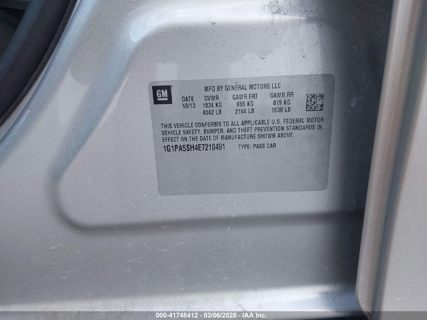 2014 CHEVROLET CRUZE 2014 Gasoline, 1.8, Front wheel drive, VIN - 1G1PA5SH4E7****** from the USA