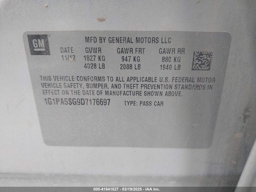 Color SilverCylinders 4Drive Front wheel driveVIN 1G1PA5SG9D7******State Run & Drive VerifiedDamage Front and back AutoRIA