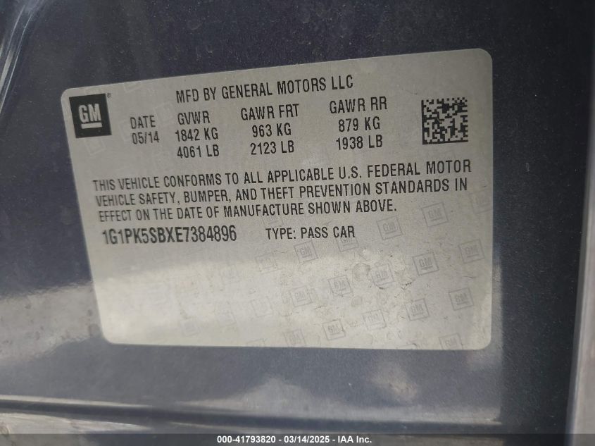 Color BlueCylinders 4Drive Front wheel driveVIN 1G1PK5SBXE7******State Run & Drive VerifiedDamage Front or back AutoRIA