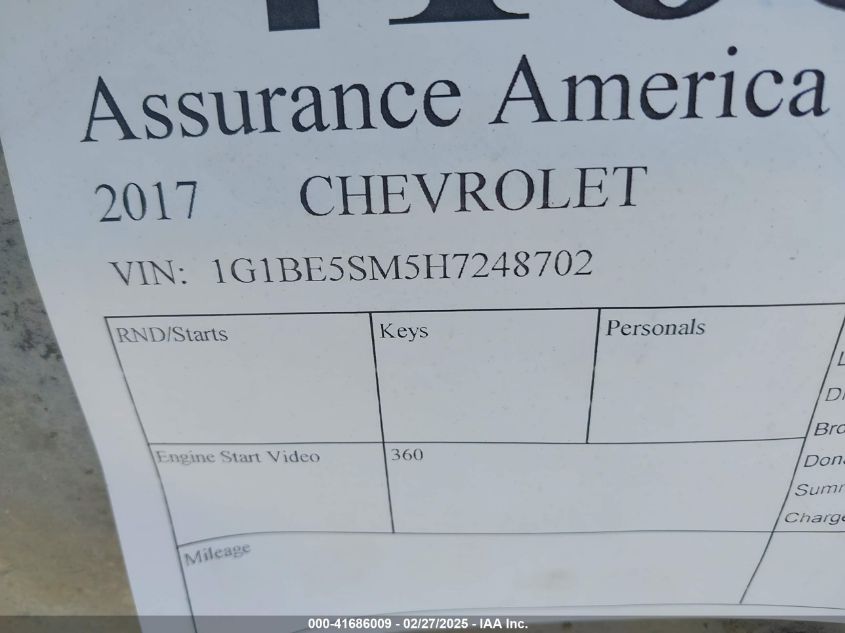 2017 CHEVROLET CRUZE 2017 Gasoline, 1.4, Front wheel drive, VIN - 1G1BE5SM5H7****** from the USA