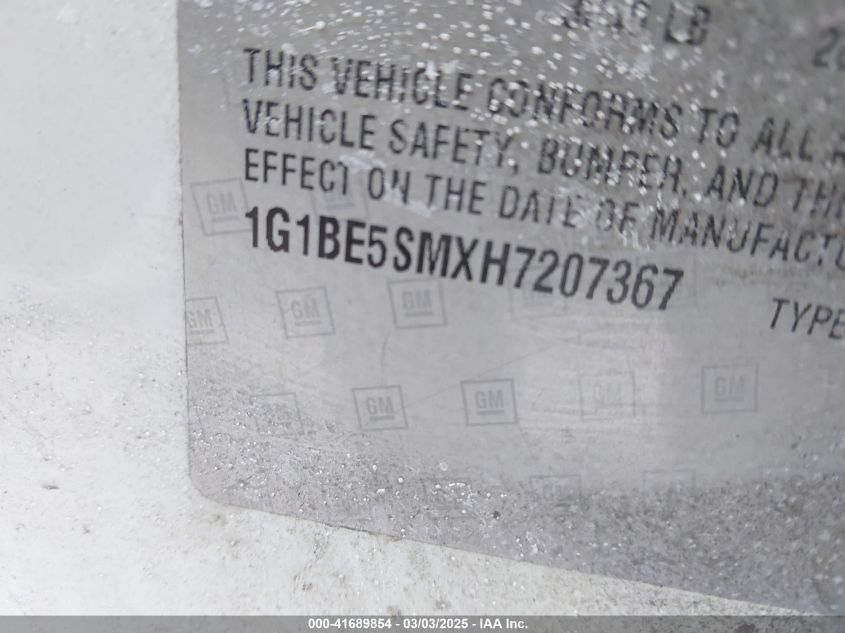 Color WhiteCylinders 4Drive Front wheel driveVIN 1G1BE5SMXH7******State Run & Drive VerifiedDamage Front or back AutoRIA