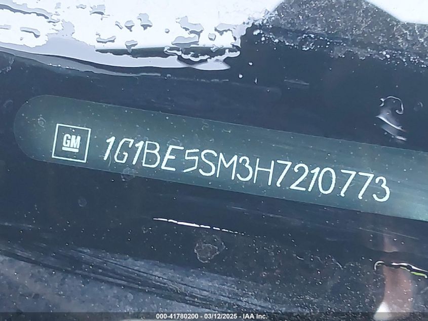 Color BlueCylinders 4Drive Front wheel driveVIN 1G1BE5SM3H7******State Run & Drive VerifiedDamage Front rightAuction date 2025-03-20 AutoRIA