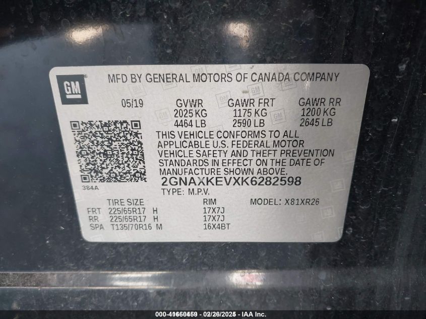 Color BlackCylinders 4Drive Front wheel driveVIN 2GNAXKEVXK6******State Run & Drive VerifiedDamage Front or back AutoRIA