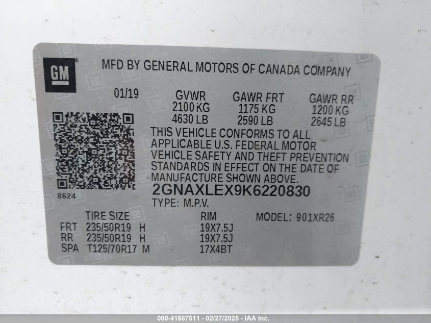 2019 CHEVROLET EQUINOX 2019 Gasoline, 2.0, Front wheel drive, VIN - 2GNAXLEX9K6****** from the USA