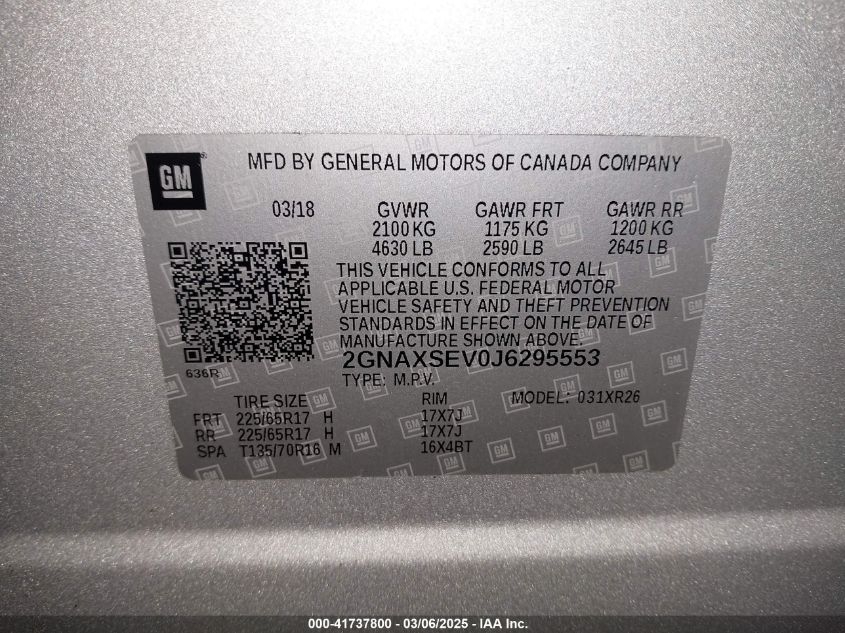 Color SilverCylinders 4Drive Full driveVIN 2GNAXSEV0J6******State Run & Drive VerifiedDamage Front or back AutoRIA