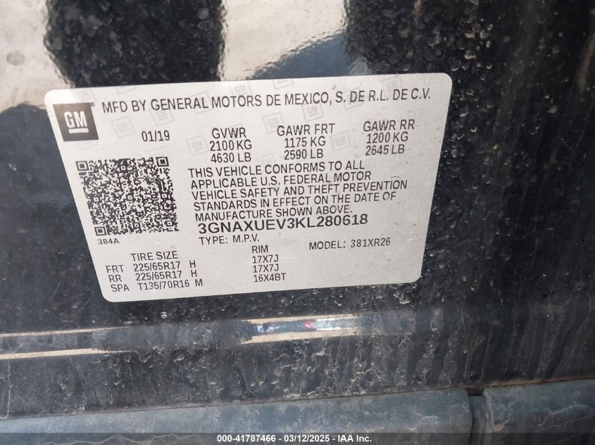 2019 CHEVROLET EQUINOX 2019 Gasoline, 1.5, Full drive, VIN - 3GNAXUEV3KL****** from the USA
