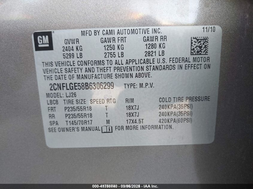 Color BrownCylinders 6Drive Full driveVIN 2CNFLGE58B6******State Run & Drive VerifiedDamage FrameAuction date 2025-03-20 AutoRIA