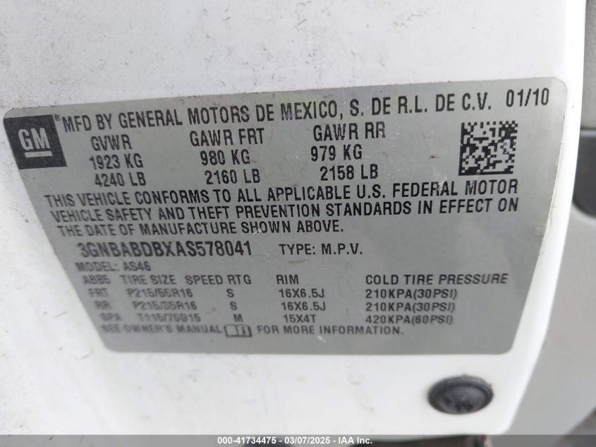 Color WhiteCylinders 4Drive Front wheel driveVIN 3GNBABDBXAS******State Run & Drive VerifiedDamage Right sideAuction date 2025-03-25 AutoRIA