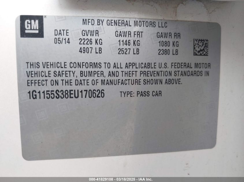 2014 CHEVROLET IMPALA 2014 Gasoline, 3.6, Front wheel drive, VIN - 1G1155S38EU****** from the USA