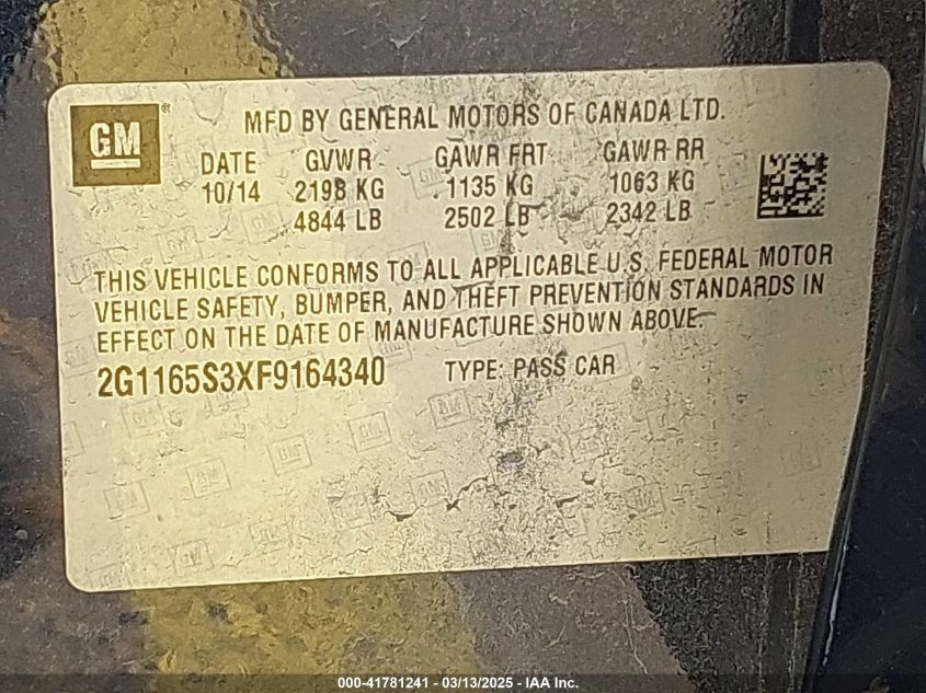 2015 CHEVROLET IMPALA 2015 Gasoline, 3.6, Front wheel drive, VIN - 2G1165S3XF9****** from the USA