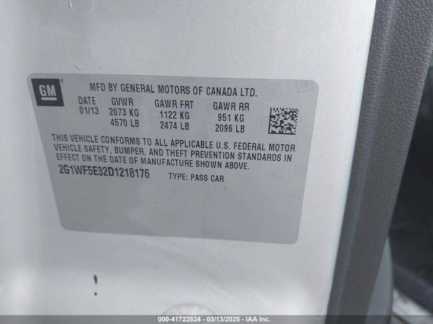 2013 CHEVROLET IMPALA 2013 Gasoline, 3.6, Front wheel drive, VIN - 2G1WF5E32D1****** from the USA