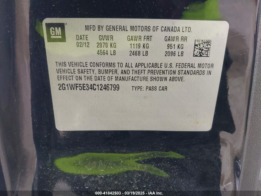 2012 CHEVROLET IMPALA 2012 Gasoline, 3.6, Front wheel drive, VIN - 2G1WF5E34C1****** from the USA