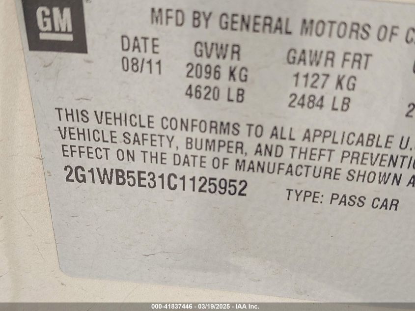 Color GoldCylinders 6Drive Front wheel driveVIN 2G1WB5E31C1******State Run & Drive VerifiedDamage From the sides