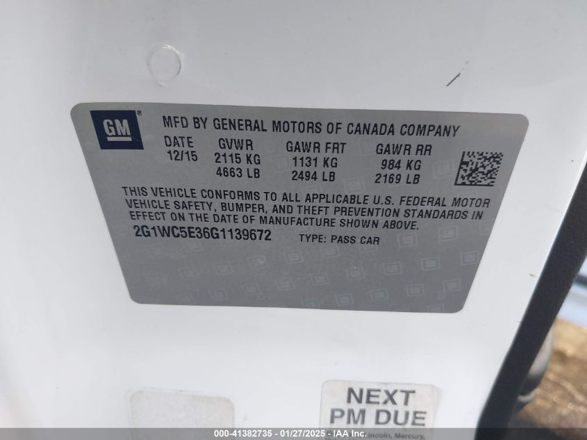 Color WhiteCylinders 6Drive Front wheel driveVIN 2G1WC5E36G1******State Run & Drive VerifiedDamage Front or back AutoRIA