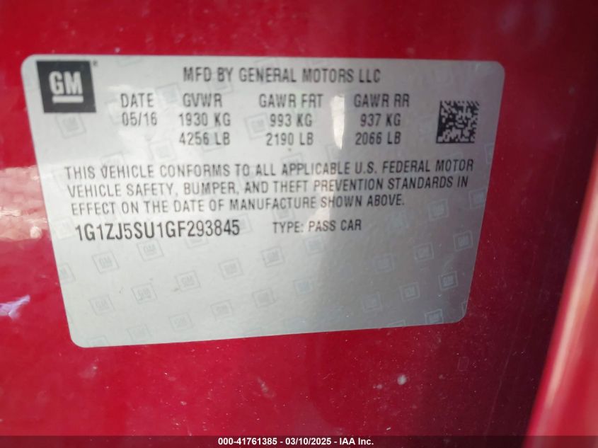 Color RedCylinders 4Drive Front wheel driveVIN 1G1ZJ5SU1GF******State Run & Drive VerifiedDamage Front and back AutoRIA