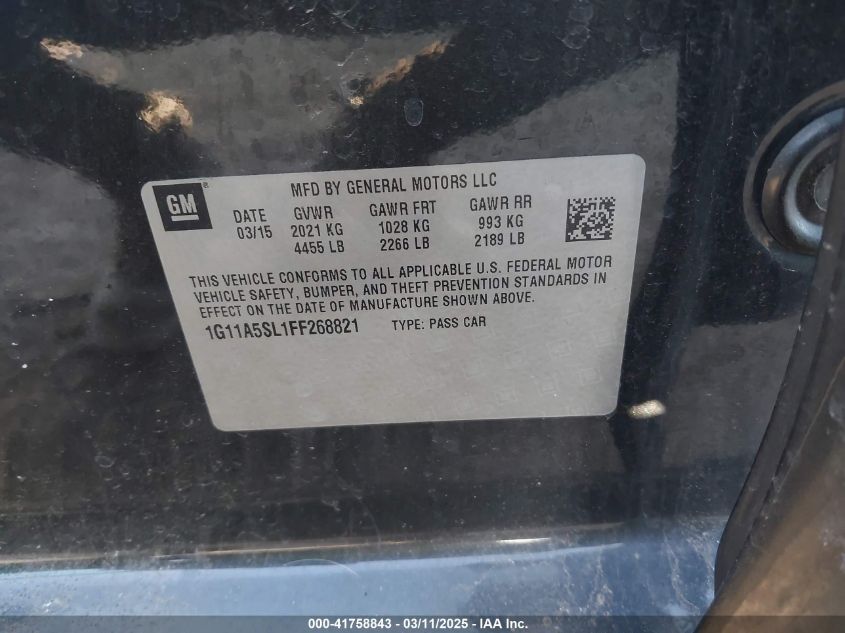 2015 CHEVROLET MALIBU 2015 Gasoline, 2.5, Front wheel drive, VIN - 1G11A5SL1FF****** from the USA