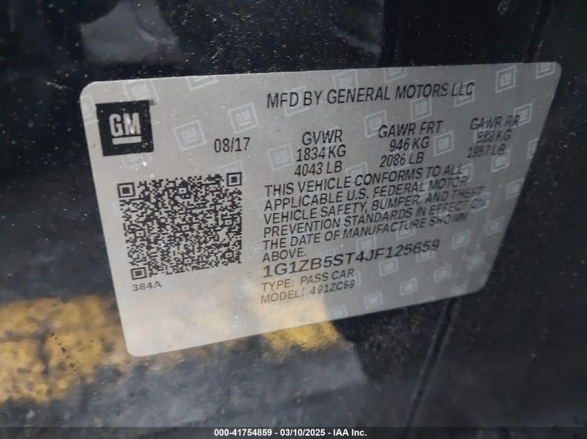 Color BlackCylinders 4Drive Front wheel driveVIN 1G1ZB5ST4JF******State Run & Drive VerifiedDamage Front or back AutoRIA