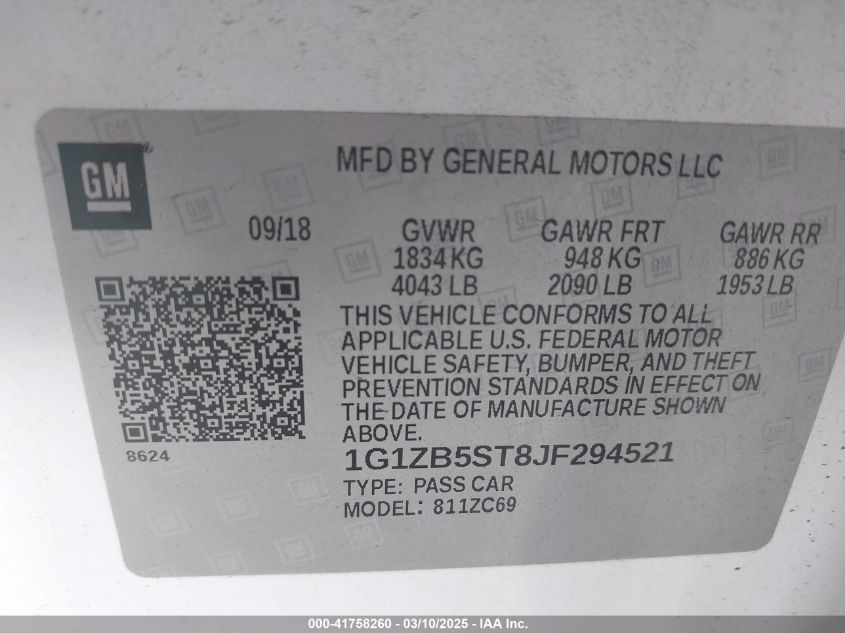 Color WhiteCylinders 4Drive Front wheel driveVIN 1G1ZB5ST8JF******State Run & Drive VerifiedDamage Bio/Chemical AutoRIA