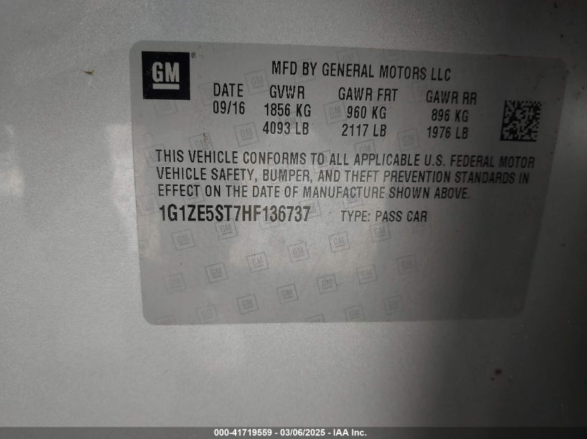 2017 CHEVROLET MALIBU 2017 Gasoline, 1.5, Front wheel drive, VIN - 1G1ZE5ST7HF****** from the USA