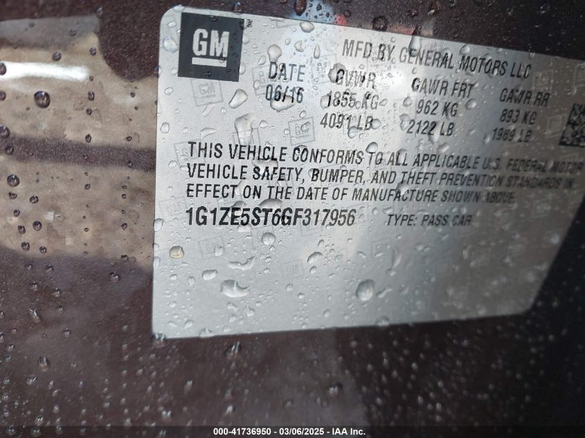 Color VioletCylinders 4Drive Front wheel driveVIN 1G1ZE5ST6GF******State Run & Drive VerifiedDamage Front left AutoRIA