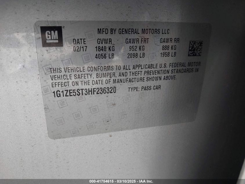 Color SilverCylinders 4Drive Front wheel driveVIN 1G1ZE5ST3HF******State Run & Drive VerifiedDamage Front or back AutoRIA