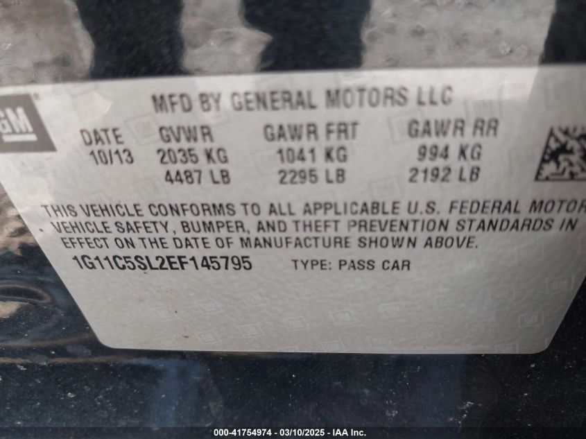 Color BlackCylinders 4Drive Front wheel driveVIN 1G11C5SL2EF******State Run & Drive VerifiedDamage Front left AutoRIA