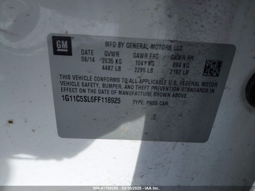 Color WhiteCylinders 4Drive Front wheel driveVIN 1G11C5SL6FF******State Run & Drive VerifiedDamage Back AutoRIA