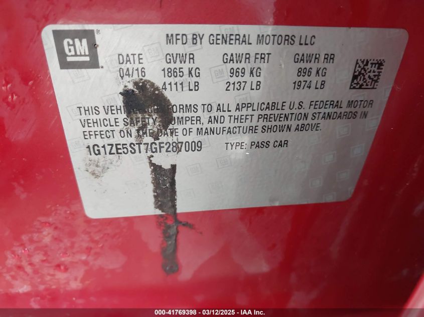 2016 CHEVROLET MALIBU 2016 Gasoline, 1.5, Front wheel drive, VIN - 1G1ZE5ST7GF****** from the USA