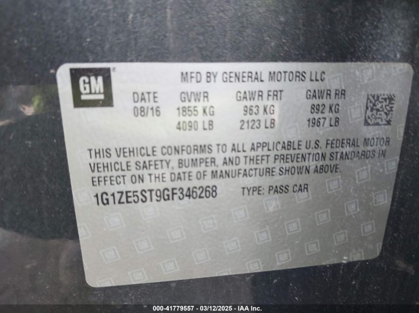 Color GrayCylinders 4Drive Front wheel driveVIN 1G1ZE5ST9GF******State Run & Drive VerifiedDamage Front and back AutoRIA