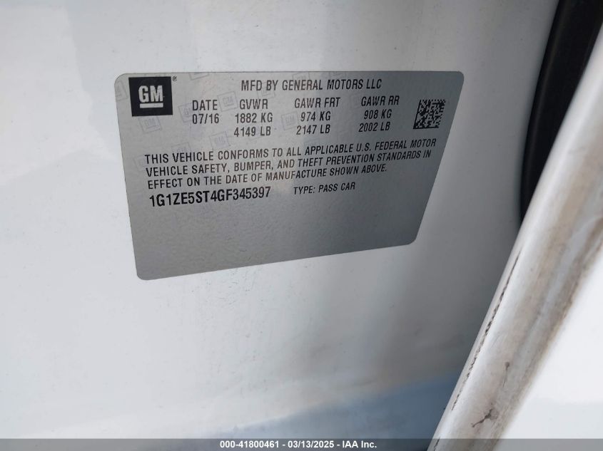 Color WhiteCylinders 4Drive Front wheel driveVIN 1G1ZE5ST4GF******State Run & Drive VerifiedDamage Front or back AutoRIA