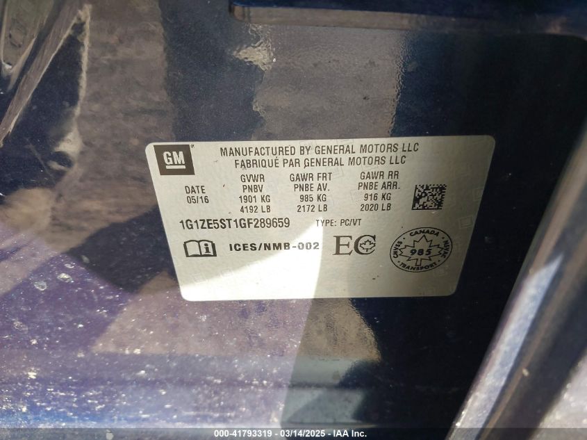 Color BlueCylinders 4Drive Front wheel driveVIN 1G1ZE5ST1GF******State Run & Drive VerifiedDamage Water AutoRIA
