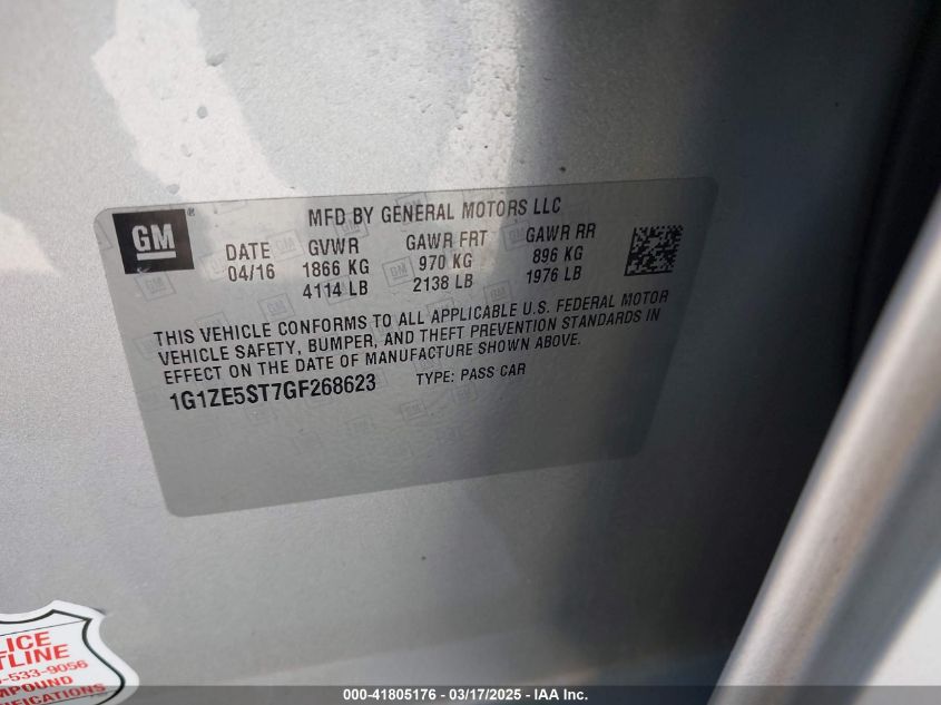 Color SilverCylinders 4Drive Front wheel driveVIN 1G1ZE5ST7GF******State Run & Drive VerifiedDamage Front or back AutoRIA