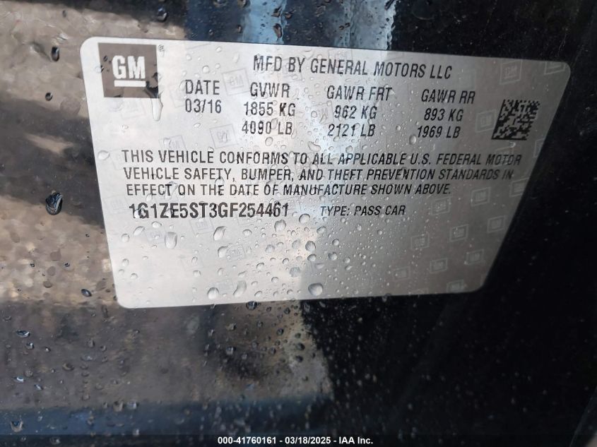 Color BlackCylinders 4Drive Front wheel driveVIN 1G1ZE5ST3GF******State Run & Drive VerifiedDamage Back AutoRIA
