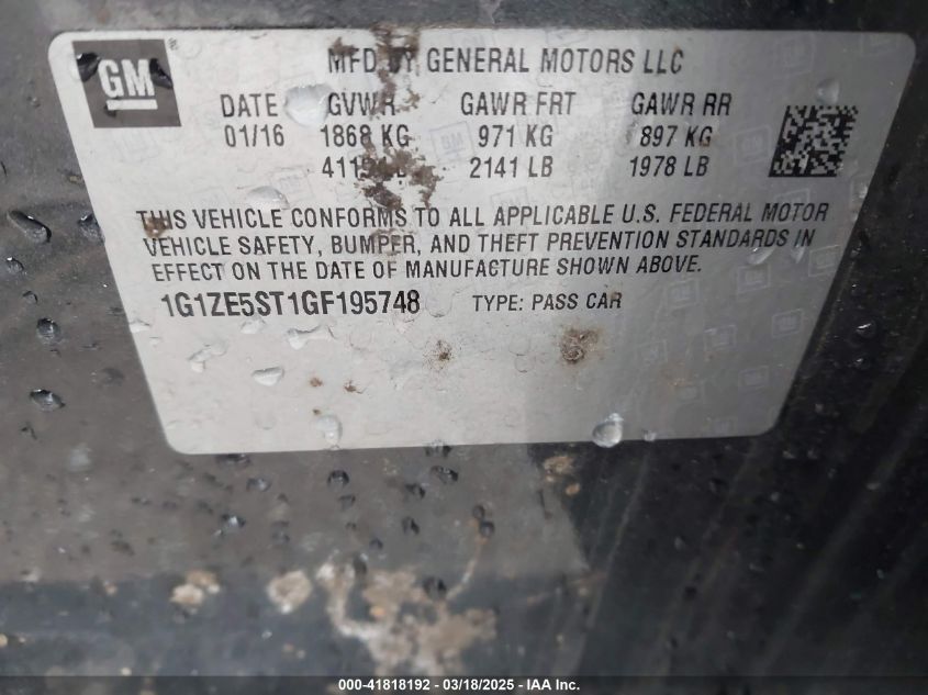 Color GrayCylinders 4Drive Front wheel driveVIN 1G1ZE5ST1GF******State Run & Drive VerifiedDamage Front or back AutoRIA