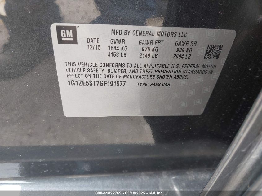 Color GrayCylinders 4Drive Front wheel driveVIN 1G1ZE5ST7GF******State Run & Drive VerifiedDamage Front or back AutoRIA