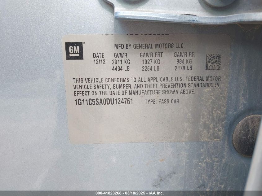 Color BlueCylinders 4Drive Front wheel driveVIN 1G11C5SA0DU******State Run & Drive VerifiedDamage Front left AutoRIA