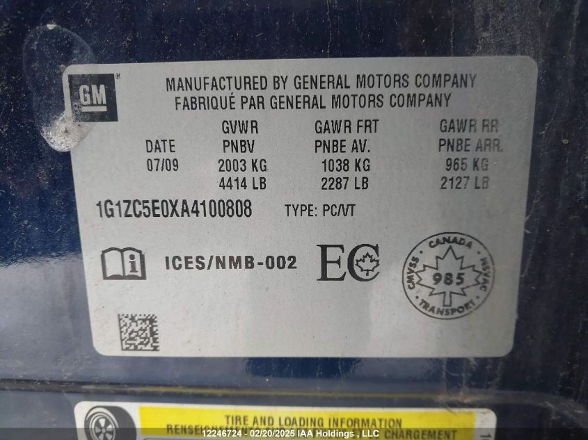 2010 CHEVROLET MALIBU 2010 , , Unknown, VIN - 1G1ZC5E0XA4****** from the USA