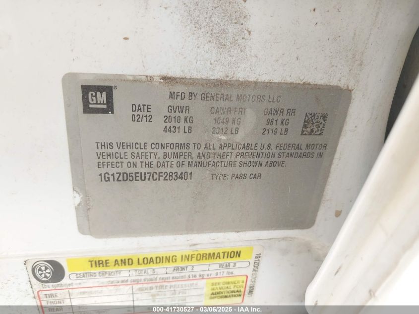 Color WhiteCylinders 4Drive Front wheel driveVIN 1G1ZD5EU7CF******State Run & Drive VerifiedDamage Bio/ChemicalAuction date 2025-03-20 AutoRIA