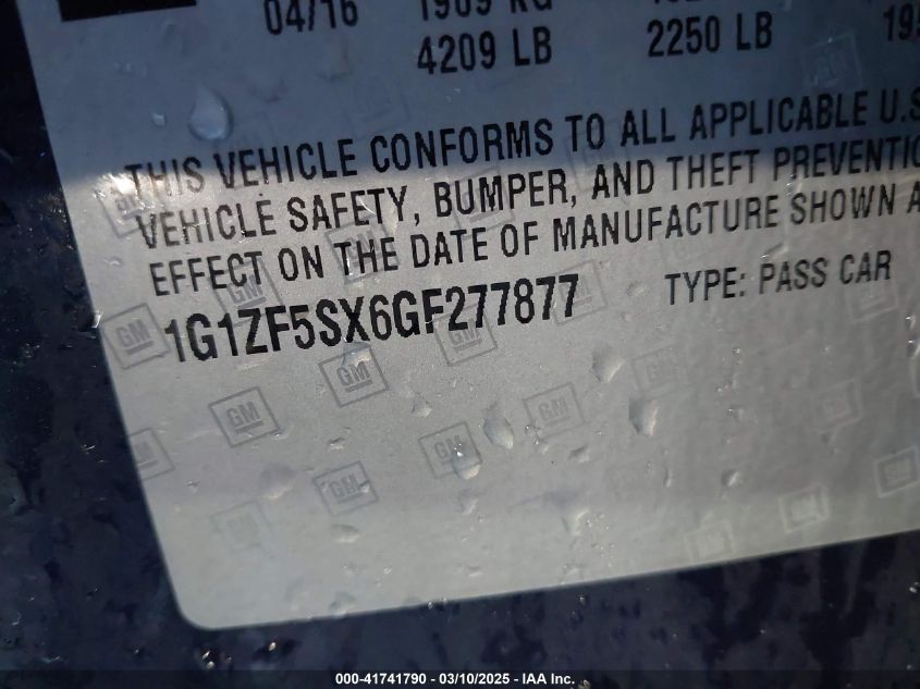 Color GrayCylinders 4Drive Front wheel driveVIN 1G1ZF5SX6GF******State Run & Drive VerifiedDamage Front and back AutoRIA