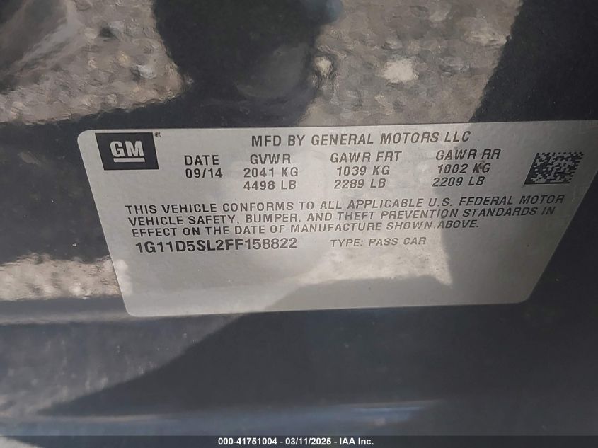 2015 CHEVROLET MALIBU 2015 Gasoline, 2.5, Front wheel drive, VIN - 1G11D5SL2FF****** from the USA