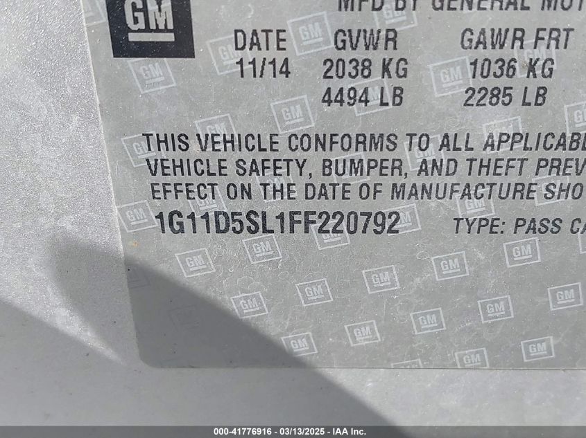 2015 CHEVROLET MALIBU 2015 Gasoline, 2.5, Front wheel drive, VIN - 1G11D5SL1FF****** from the USA