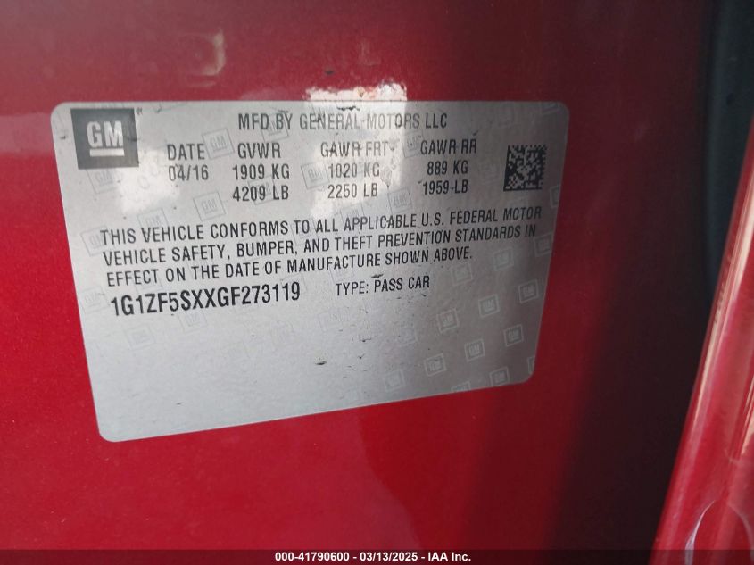 Color RedCylinders 4Drive Front wheel driveVIN 1G1ZF5SXXGF******State Run & Drive VerifiedDamage Right side AutoRIA
