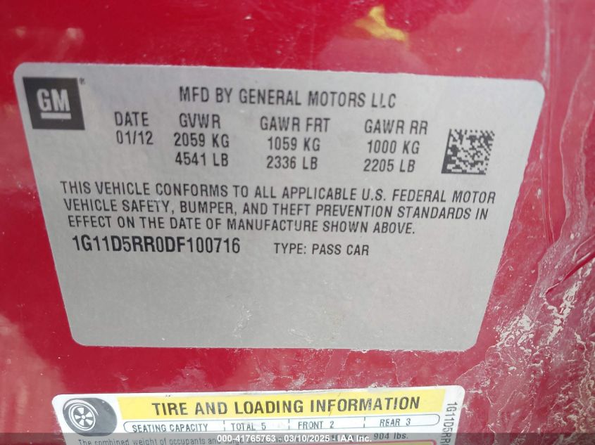 Color RedCylinders 4Drive Front wheel driveVIN 1G11D5RR0DF******State Run & Drive VerifiedDamage Front or back AutoRIA