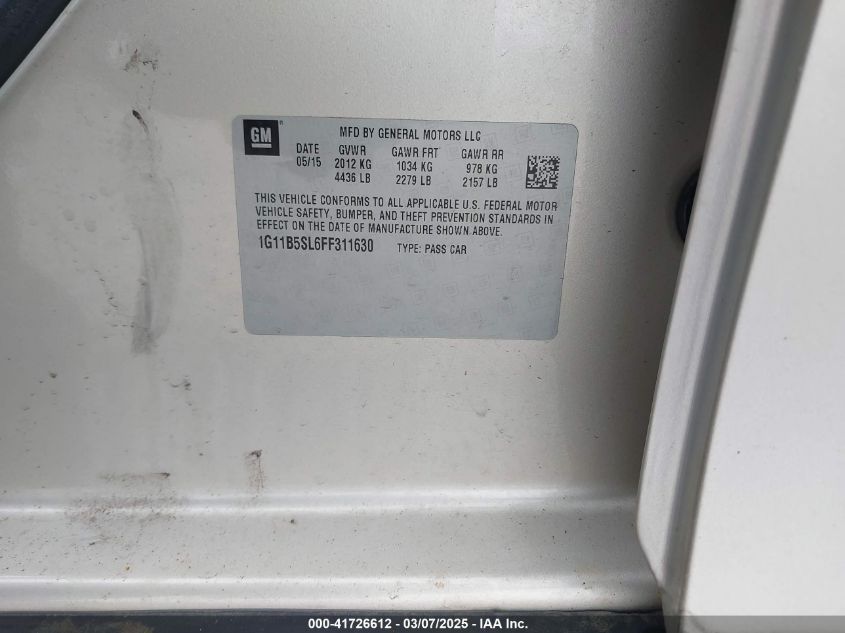 Color GoldCylinders 4Drive Front wheel driveVIN 1G11B5SL6FF******State Run & Drive VerifiedDamage Front and back AutoRIA