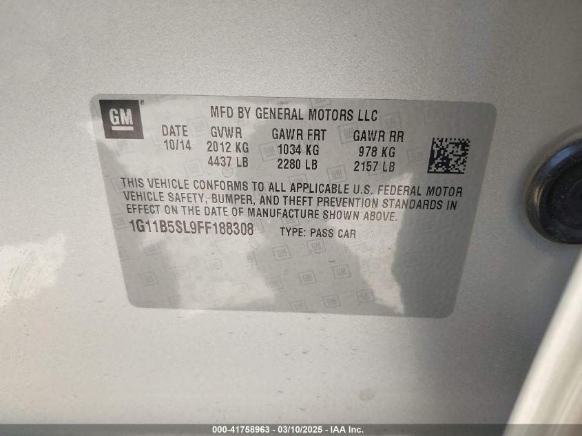 Color SilverCylinders 4Drive Front wheel driveVIN 1G11B5SL9FF******State Run & Drive VerifiedDamage Front or back AutoRIA
