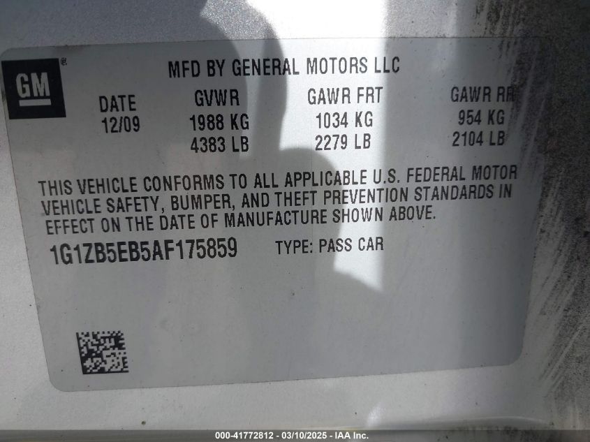 2010 CHEVROLET MALIBU 2010 Gasoline, 2.4, Front wheel drive, VIN - 1G1ZB5EB5AF****** from the USA